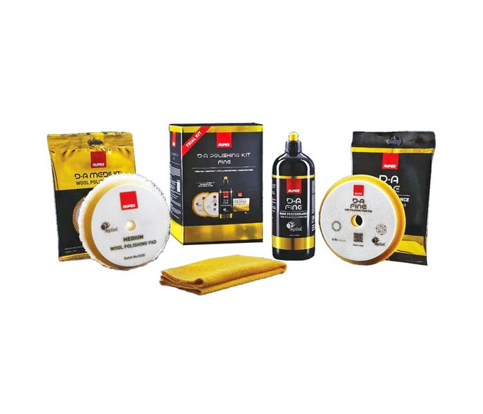 Op zoek naar een complete set om zelf je auto te polijsten? Deze RUPES D-A FINE Trial Kit bevat alle producten om met je polijstmachine de lak op je auto te polijsten. De lamswol polijstschijf verwijdert krassen en lakdefecten, waarbij de foam polijstpad de auto weer op glans brengt. Het RUPES D-A FINE polijstmiddel kan gebruikt worden met iedere polijstschijf.