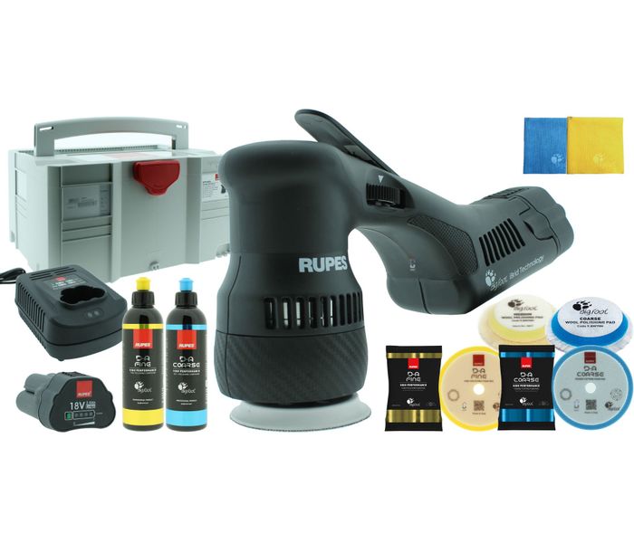 The RUPES HLR75 battery powered polisher with 75mm pad is a small eccentric polishing machine suitable for the polishing of paint on small areas or hard to reach places. It has an eccentric stroke of 12mm and has a speed controller for adjusting the speed during polishing. This BETA set is the most luxurious set, delivered in a sturdy Systainer box that contains everything you need for professional car paint polishing.