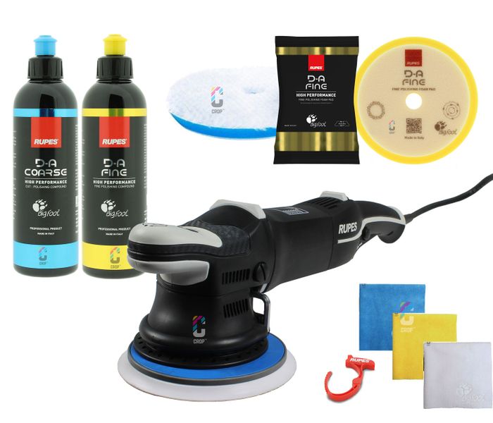 RUPES LHR15 Mark III Polisher BAS Set is a professional starter set that includes everything you need to polish a car. The BAS Set of the RUPES BigFoot LHR15 Mark 3 consists of the RUPES Mark 3 eccentric polisher, a wool polishing pad, a soft polishing disc, the new RUPES D-A polishing compound coarse and fine and 4 microfiber cloths. With this professional polisher basic set you have everything you need to polish any paint and car.