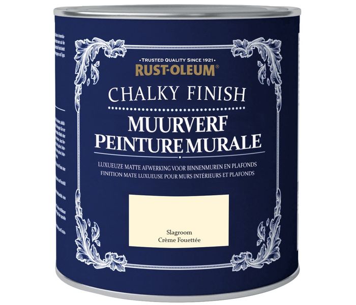 Rust-Oleum Chalky Finish Wall Paint Whipped Cream is a paint suitable for walls and ceilings. The chalk paint dries matte and is available in different colors specially selected for different surfaces. Give your wall or ceiling a different look in no time!