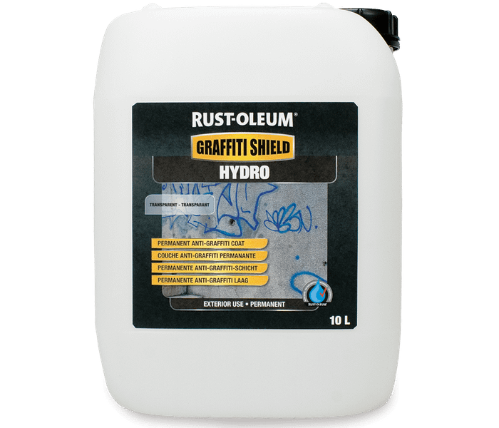 Hydro by Rust-Oleum GraffitiShield is a permanent anti-graffiti coating. Its water-based formula is based on nanoparticles that penetrate deep into the substrate. This prevents graffiti vandalism without damaging the surface in the process.