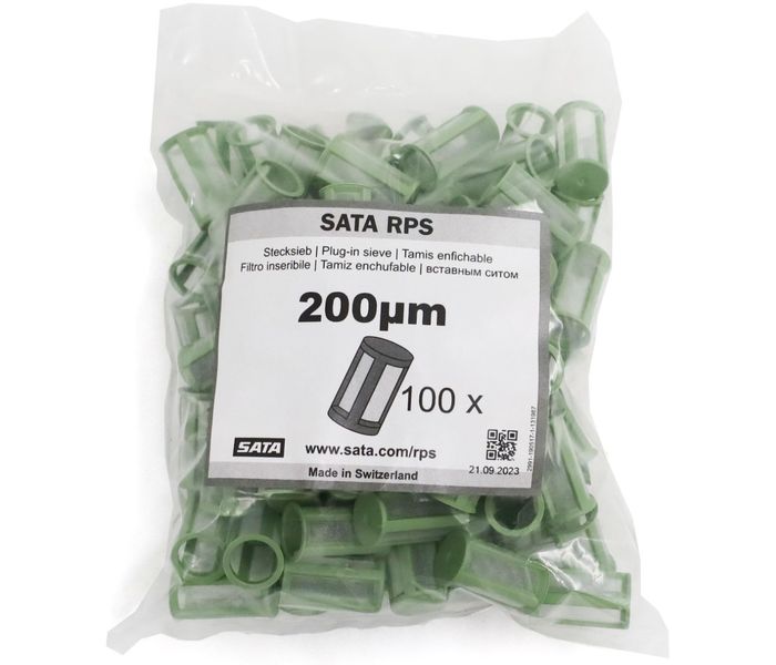 This original SATA 200 µm flat screen is specially designed as a spare part for SATA RPS 0.3l, 0.6l and 0.9l. The set contains 100 pieces, ideal for consistent filtering of paints and coatings for smooth and professional results.