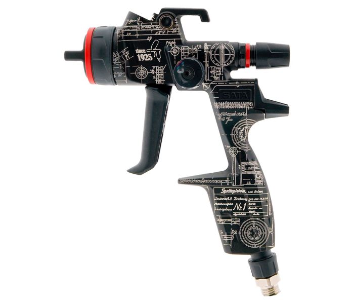 Special Edition SATA jet X HVLP 100 Years is not just another spray gun; it is a tribute to a century of innovation and craftsmanship. The striking design of this special edition showcases the original technical drawing of the very first SATA spray gun; the No. 1. With this unique print, SATA takes a moment to look back at 100 years of product history, while not leaving today's technology behind.