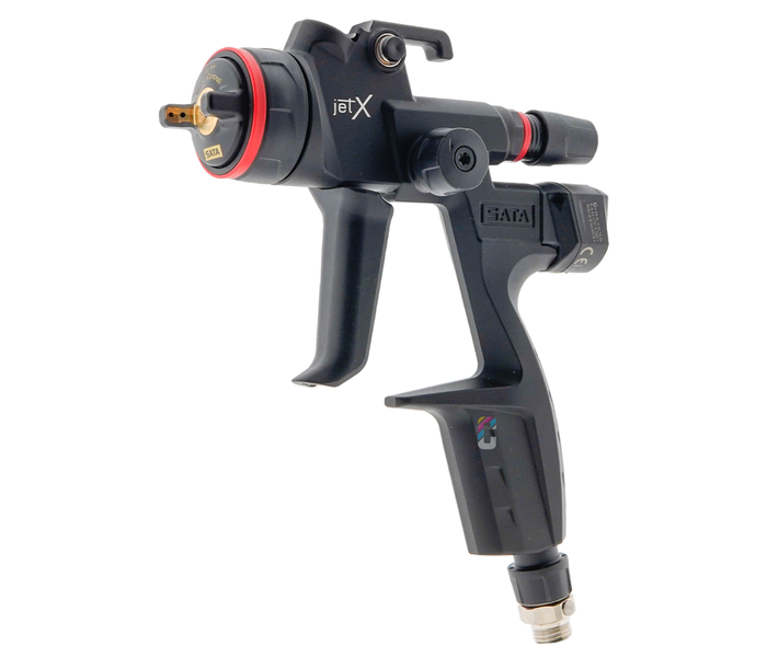 SATAjet X RP spray gun - Digital with SATA Adam X mounted is a highly professional spray gun for handling automotive paint, clear coat, base coat, 2K paint and more. The SATAjet X Digital spray gun with RP air cap has a high paint output that allows you to spray any paint very tightly with an unmatched high level. This SATA jet X features an innovative labyrinth airflow system that gives you an exceptionally fine and homogeneous atomization of the paint or lacquer without turbulence and pulsation. As a result, SATA's spray gun works for you and is definitely the best spray gun for professional use. The highly ergonomic gun body of the SATAjet X is made of lightweight black aluminum which makes the spray gun comfortable to hold for optimal control of the paint spray gun.