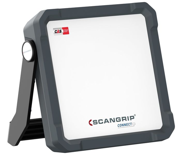 SCANGRIP's high-quality construction lamp comes with an integrated carrying handle and a stand for tripod mounting, making it very convenient and easy to position the lamp where it is needed. The robust housing is made of a highly shock-resistant plastic material. It is waterproof and since the LEDs do not produce heat, there is no fire hazard.