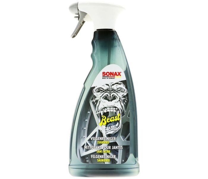 SONAX BEAST Wheel Cleaner is a fast-changing formula to thoroughly clean highly soiled rims. SONAX "The Beast" Wheel Cleaner makes cleaning rims faster and easier than other wheel cleaners. In addition, SONAX Wheel Cleaner is acid-free, making it safe for different types of rims.