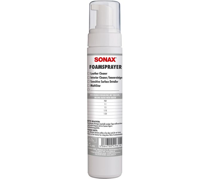SONAX Foam Sprayer is an empty bottle that works like a foam pump to turn interior cleaner or leather cleaner into foam instead of a thin liquid. A liquid wets the surface rather than doing its job. By applying the interior or leather cleaner with this foam sprayer, the foam stays on the surface and gets a powerful effect. This allows you to get the most out of your cleaner!