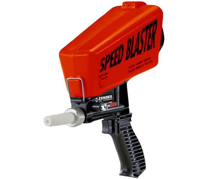 The lightweight, long-lasting, comfortable design employs gravity to help force the blast media into a hardened steel mixing chamber. Compressed air then forces the particles through a top grade alumina ceramic nozzle at extraordinary velocity. Speed Blaster is self-contained and small for easy storage in a toolbox drawer. The next time you need to blast something, just connect compressed air and go.