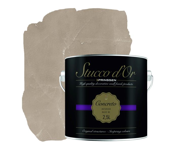 - Stir well before use and apply Stucco d'Or Concreto Natural Light Brown concrete look paint in two coats (no thinning is necessary). Apply the first coat opaquely with a paint roller or stainless steel trowel. The second coat can then be applied with a stainless steel stucco trowel to create the desired concrete effect.
