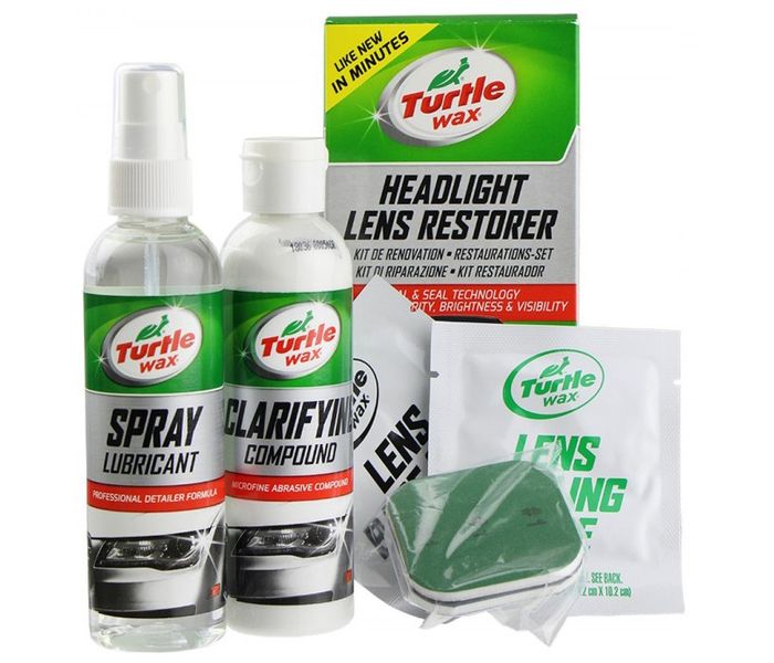 TURTLE WAX Green Line Headlight Restorer Kit is a professional system and precise way to restore and/or improve headlight and taillight lens clarity to sun damaged, scratched, oxidized clear lenses. Cloudy, milky and yellowed lenses can reduce headlamp function at night or during poor visibility conditions.