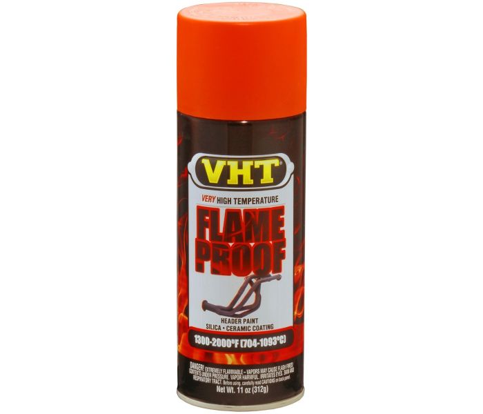 VHT Flameproof Orange spray can is a fireproof exhaust paint that is heat-resistant up to 1100°C. This VHT Flameproof aerosol has been specially developed to spray your exhaust in a new colour Orange and to protect it against rust and corrosion. With the VHT Flameproof aerosol Orange, you will give the exhaust of your car, motorbike or scooter a new fresh colour!