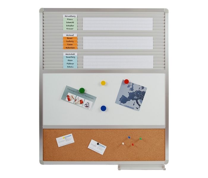 - Strip Insert Board: This part of the multifunction board can be used as a strip insert for your planning of production, personnel, machines and progress control. One eye storage is sufficient to obtain all important information. There are 18 assignable courses available for this purpose. The insertion depth is 1.1 cm and the column width is 68.0 cm.