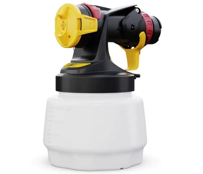 Wagner HVLP Flexio Spray Attachment - Wall Extra I-Spray 1300 is a versatile spray top with a capacity of 1300 ml, designed for efficient application of interior wall paint such as latex and emulsion paint. Thanks to the patented I-Spray technology, it delivers an extra fine atomization, suitable for both thick and thin paints. The spray jet is variably adjustable in width and direction (horizontal/vertical), ensuring even coverage for various projects.