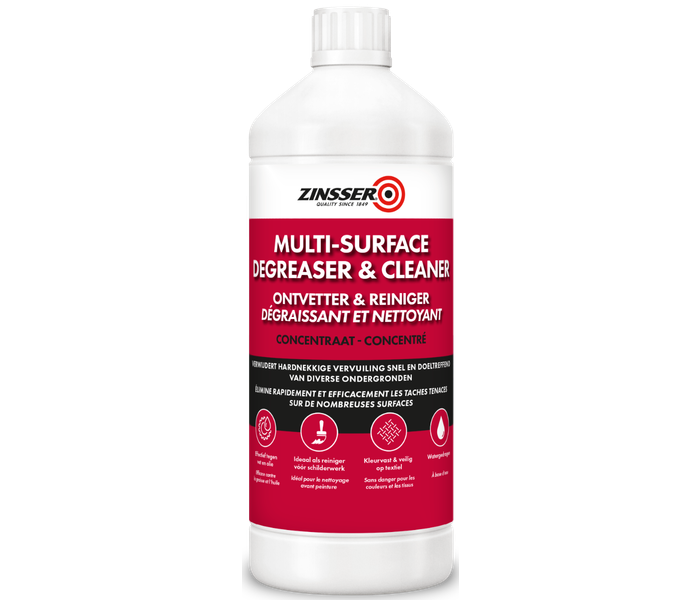 Degreasing before painting is a crucial step to prevent grease, dirt and old deposits from affecting the adhesion of new paint. Zinsser Multi-Surface Degreaser & Cleaner thoroughly removes these contaminants, ensuring even paint adhesion and longer paint life. Thanks to its powerful formula, it works quickly and effectively, even on heavily soiled surfaces. The product is also extremely economical to use thanks to its generous dilutability of 1:1 to as much as 1:200, making it ideal for large projects. This allows you to treat large areas or multiple rooms with one bottle without losing quality. For those working with a spray bottle, simply dilute 1:1 to refill the spray.
