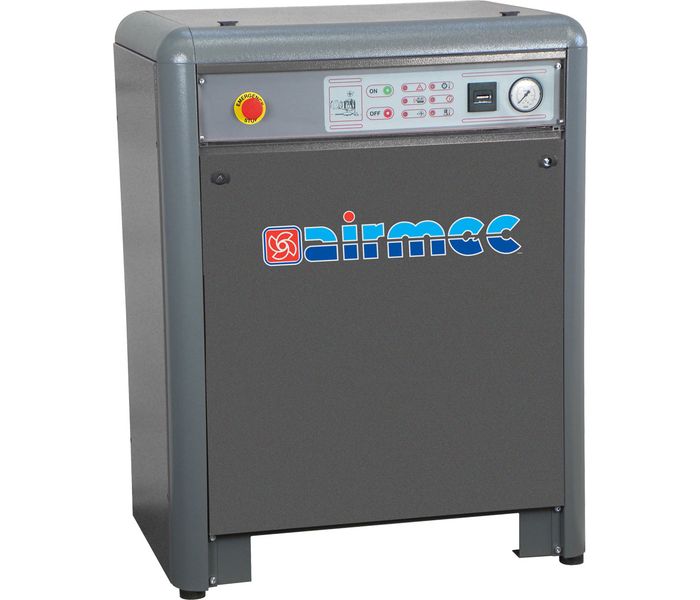 El AIRMEC CST600 es un compresor alternativo de 400 V insonorizado y lubricado con aceite, extremadamente silencioso, cargado a una velocidad extremadamente baja e integrado en una sólida caja insonorizada. Adecuado para presiones de hasta 11 Bar y 5,5 CV de potencia de motor.