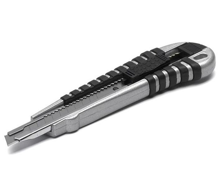 La navaja de metal Anza es una navaja Stanley muy práctica equipada con un botón para bloquear la hoja. El cuchillo de corte de 9 mm no debería faltar en su kit de manitas y es ideal para cortar papel pintado, boquillas y cinta adhesiva.