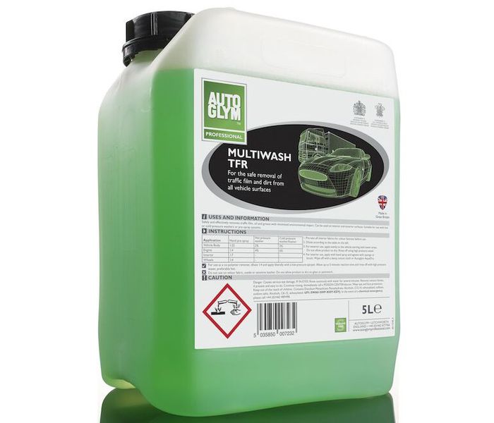 Utilice Autoglym Multiwash TFR para limpiar los diferentes tipos de superficies y contaminantes a los que están expuestos los coches. Su potente APC le ahorrará mucho dinero ya que puede utilizarse en casi cualquier superficie.