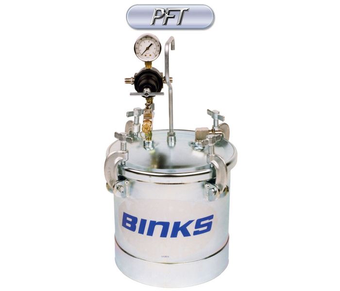 El recipiente a presión BINKS de 9,5 litros de capacidad es ideal para pulverizar fácil y rápidamente todo tipo de pinturas. El recipiente a presión BINKS es un sistema de recipiente a presión profesional al que se pueden conectar todo tipo de pistolas pulverizadoras presurizadas. Los recipientes a presión requieren una pequeña cantidad de aire para presurizarlos y, como no tienen piezas móviles, pueden utilizarse sin necesidad de mantenimiento. Se suministra sin pistola ni juego de mangueras.