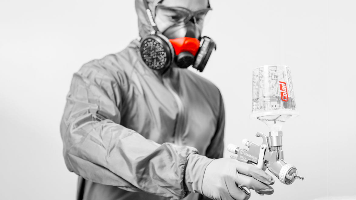 En verano puede hacer calor en el lugar donde pintas el coche. Aun así, es esencial llevar equipos de protección personal (EPI) completos. Piensa en un mono de pintura, guantes de nitrilo, mascarilla de pintura y gafas de seguridad. Estos te protegen tanto de disolventes como de niebla de pintura, y también evitan que el sudor forme gotas que puedan caer sobre la pintura. Una pequeña gota de sudor puede estropear seriamente la capa de pintura.