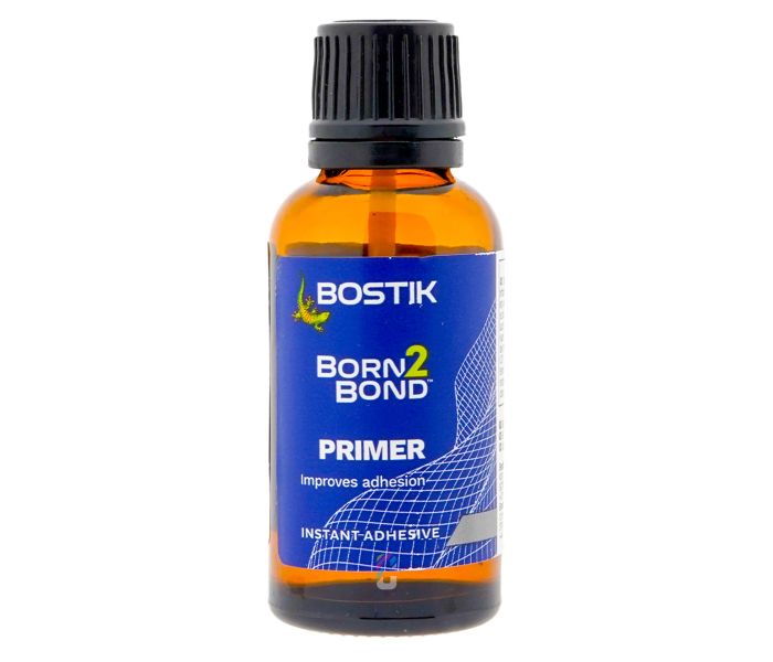 Bostik Born2Bond Primer 30ml es una imprimación de adherencia líquida y transparente diseñada específicamente para pretratar poliolefinas y otros materiales de baja tensión superficial para que los adhesivos de cianoacrilato se adhieran bien a ellos. Esta imprimación Bostik para adhesivos de cianoacrilato actúa como acelerante y mejora la adhesión a sustratos difíciles de pegar como PE, PP y teflón.