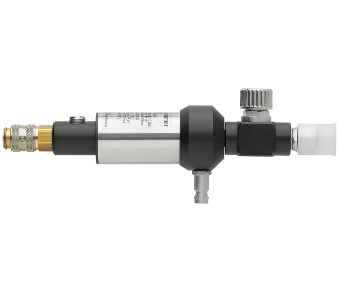 El calentador de aire respirable SATA original calienta el aire hasta 22 °C y está equipado con un caudalímetro de aire ajustable (VLM) y un medidor de consumo (VLM) para un control preciso. Este calentador robusto y sin mantenimiento es compatible con la máscara de aire respirable SATA Vision 2000 y otros modelos SATA.