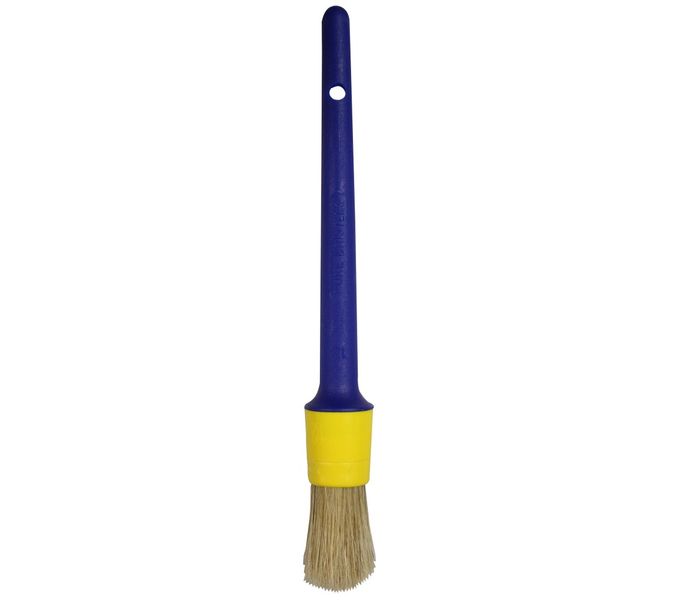 Cepillo redondo desechable de bajo coste con cerdas de cerdo blancas de mejor calidad para trabajos de limpieza. Este cepillo con punta patentada tiene mango y bote de plástico.