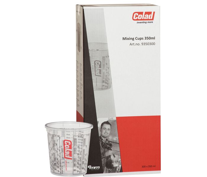 Los vasos mezcladores COLAD de 350 ml de capacidad son vasos mezcladores pequeños para mezclar y preparar pinturas de automoción. Estos vasos mezcladores de 350 ml de COLAD se presentan por 300 unidades en una caja grande de embalaje económico. Gracias a este embalaje a granel, usted compra el COLAD 350ml al precio más bajo en CROP. Esto hace que este vaso mezclador sea ideal para el consumidor a granel.