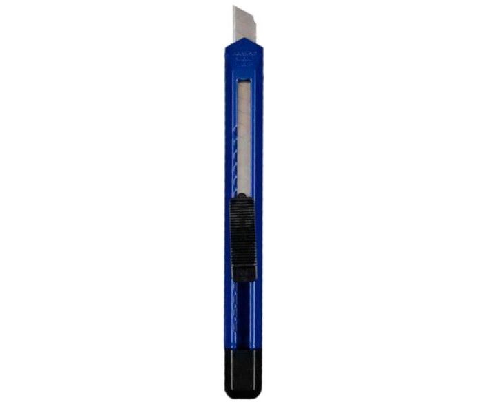 Cuchilla de corte con soporte de plástico con botón de ajuste y bloqueo. Esta navaja está afilada como una cuchilla de afeitar y mide 8 cm de largo y 9 mm de ancho.