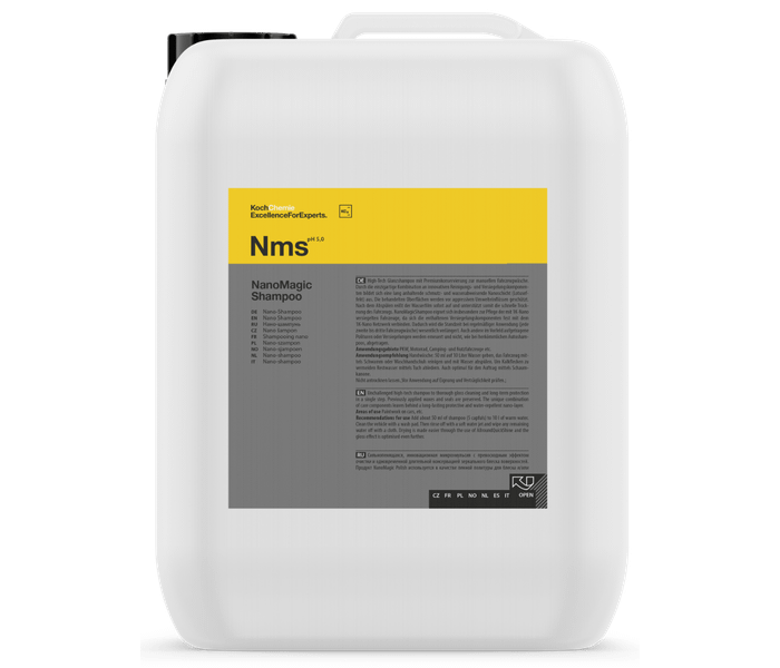 Koch Chemie NanoMagic Shampoo es un champú de alta tecnología indiscutible para una limpieza a fondo con un acabado de alto brillo y protección a largo plazo en un solo paso. Las ceras y selladores aplicados previamente se conservan. La combinación única de componentes acondicionadores deja una nanocapa protectora e hidrófuga de larga duración. Proporciona un efecto brillante, hidrófugo y definidor del color en la pintura y las piezas de plástico del exterior del coche.
