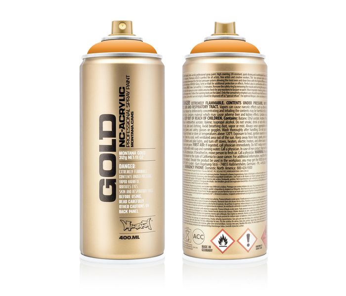 El Aerosol Montana graffiti Scampi de la serie GOLD está envasado en un aerosol de baja presión. Debido a que el Aerosol Montana GOLD es un spray de baja presión, puede rociar la pintura de graffiti de una manera muy controlada con un control óptimo sobre el resultado. Esta pintura en aerosol Montana GOLD Scampi G2040 se seca suave como la seda y rápidamente, incluso a bajas temperaturas. Gracias a su fórmula especial antigoteo, ¡evitará los descuelgues!