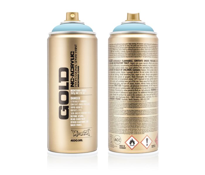 El Aerosol Montana graffiti Fresh Blue de la serie GOLD está envasado en un aerosol de baja presión. Debido a que el Aerosol Montana GOLD es un spray de baja presión, puede rociar la pintura de graffiti de una manera muy controlada con un control óptimo sobre el resultado. Esta pintura en aerosol Montana GOLD Fresh Blue G5010 se seca suave como la seda y rápidamente, incluso a bajas temperaturas. Gracias a su fórmula especial antigoteo, ¡evitará los descuelgues!