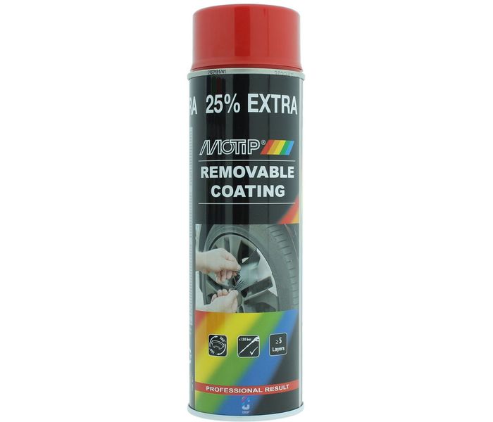 MoTip Cubierta Plástica rojo alto brillo es un aerosol de 500 ml con una alta cobertura. En este pulverizador rojo brillante MoTip Removable Coating hay una boquilla que puede girar 360 grados. Esto significa que siempre tendrá el ángulo de pulverización correcto con esta Cubierta Plástica rojo de alto brillo. Gracias a su alta calidad, podrá retirar fácilmente la Cubierta Plástica rojo MoTip siempre que lo desee. MoTip Spray Cubierta Plástica se adhiere a cualquier material, sustrato y superficie, como metal, aluminio, plástico, acero, vidrio y madera. No recomendamos el uso de MoTip's Removable Coating sobre pintura 1K.