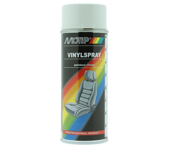 MoTip Vinyl spray WHITE es una pintura para rociar vinilo, cuero e imitación de cuero. Este spray de vinilo MoTip es de color blanco con un brillo duradero que conserva la estructura original. El spray de pintura para cuero MoTip tiene una excelente adherencia y la pintura se mantiene elástica, de modo que la pintura permanece bonita y como nueva durante mucho tiempo.