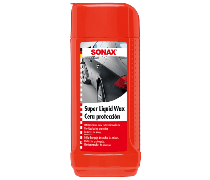 SONAX Cera Líquida es tan fácil de aplicar como cualquier otra cera y es adecuada para todas las pinturas nuevas y en buen estado. Las micro-partículas de cera penetran en los poros de la pintura y crean un brillo profundo. Esto mantiene la pintura limpia durante más tiempo y reduce la adherencia de la suciedad. Se puede aplicar manualmente o con una pulidora de doble acción (DA).
