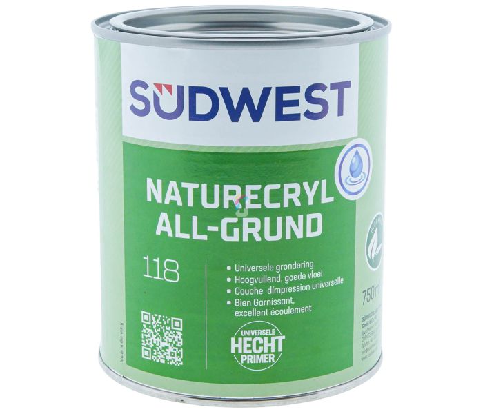 NATURECRYL de Südwest es la imprimación al agua especial All Grund Primer para madera, metal, aluminio, plástico, zinc, cobre, acero inoxidable, azulejos y más. Con NATURECRYL de Südwest, incluso puede pintar sustratos difíciles como melamina y aluminio anodizado en All Grund. Gracias a su amplia aplicabilidad, esta imprimación es perfecta tanto para proyectos de renovación como de nueva construcción, en interiores y exteriores.