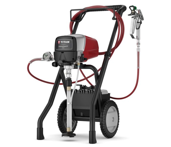 TITAN Compact 190 es la bomba pulverizadora airless móvil con potentes prestaciones para trabajos profesionales y de bricolaje exigentes. El pulverizador de pintura airless TITAN Compact 190 ofrece el equilibrio perfecto entre potencia, precisión y facilidad de uso. Este pulverizador es ideal para pintores autónomos, escayolistas y profesionales que desean trabajar de forma eficiente y con resultados ajustados. La bomba de pulverización profesional TITAN se suministra como un conjunto completo en un chasis robusto con mango telescópico y ruedas grandes, para que pueda empezar a trabajar de inmediato y llevar la bomba de pulverización con usted dondequiera que vaya.