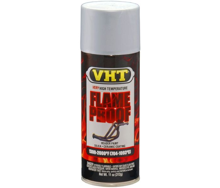 VHT Flameproof Aluminio en aerosol es una pintura de escape resistente al fuego que es resistente al calor de hasta 1100°C. Este aerosol ignífugo de VHT está especialmente diseñado para pintar el escape de un nuevo color Aluminio y protegerlo de la oxidación y la corrosión. Con el aerosol ignífugo Aluminio de VHT le darás un nuevo color al tubo de escape de tu auto, moto o scooter!