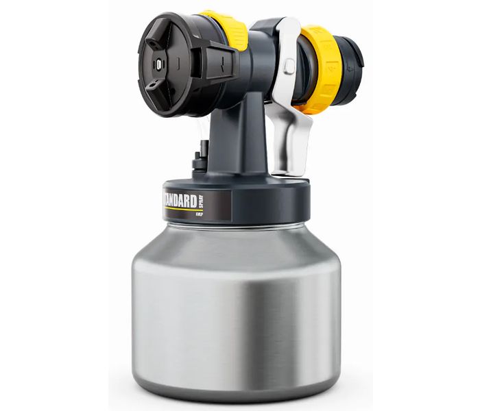 El Cabezal pulverizador Wagner XVLP 2.0 StandardSpray está diseñado para el procesamiento eficiente de pinturas estándar con una boquilla de visco-tornillo de 4,1 mm. Gracias al sistema Click&Paint, la boquilla y el depósito se pueden cambiar rápidamente, lo que aumenta la velocidad de trabajo. El DirectSprayControl ofrece un control preciso de las cantidades de aire y material, así como de la forma del chorro de pintura, directamente en la pistola.