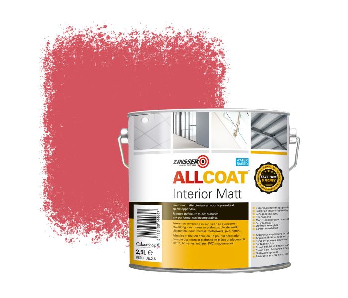 Zinsser Allcoat Pintura de pared para interiores RAL 3017 Rosa - 2,5 litro