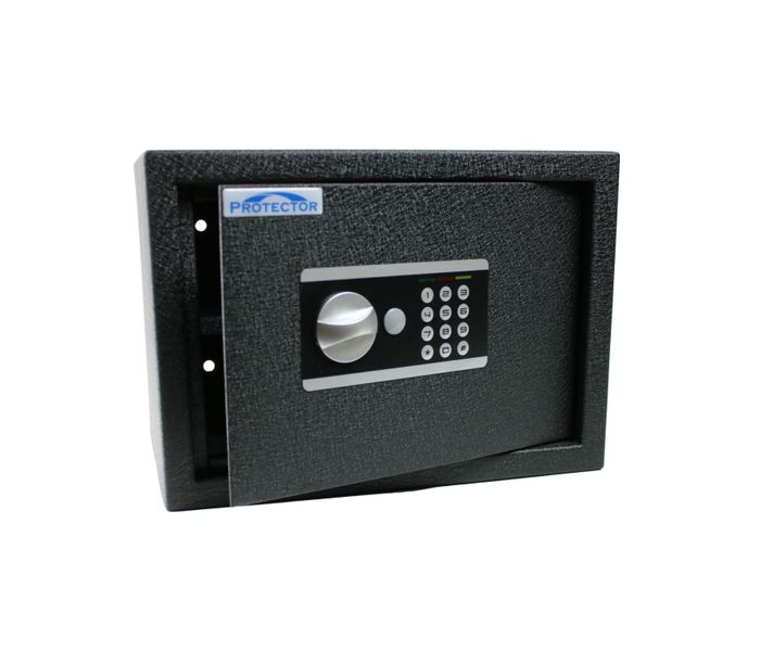 Le coffre-fort privé Protector 250-E anti-effraction simple avec serrure à combinaison électronique. Ce coffre-fort d'une capacité de 15 litres est doté d'une porte en acier massif et son faible poids en fait un coffre-fort idéal pour la maison et le bureau, mais aussi pour le bateau, la voiture ou la caravane.