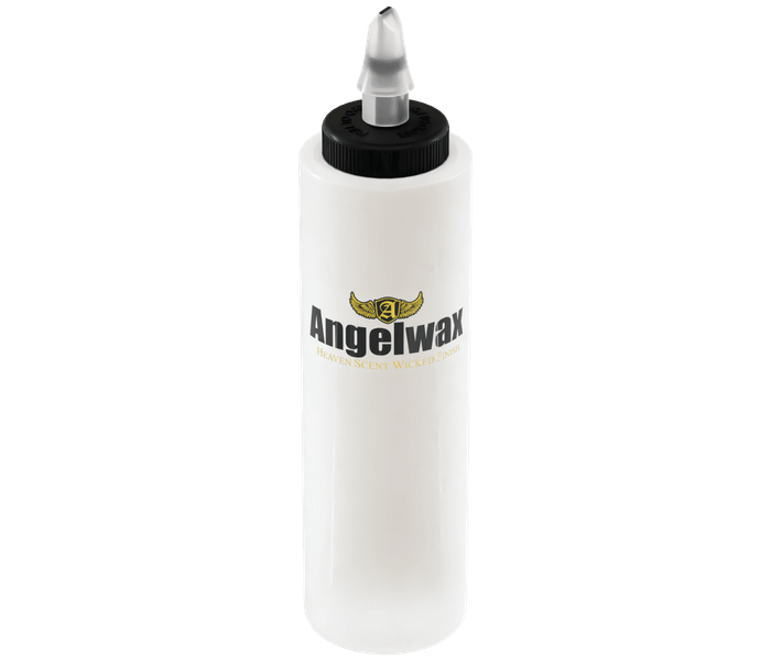 Ceci est un flacon d'application vide d’Angelwax montée avec un distributeur intelligent. Ce flacon rechargeable est livrée avec un distributeur comprenant un bouchon à vis et une ouverture de pulvérisation en caoutchouc. L'avantage est que les agents de polissage ne peuvent pas sécher ni encrasser l'ouverture.