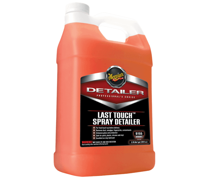 Il suffit de vaporiser et d'essuyer avec un chiffon en microfibre propre pour obtenir une brillance éblouissante. La formule contient des polymères qui éliminent la poussière et les traces de doigts et laissent un fini brillant lisse et microfin. La poussière et la saleté sont éliminées sans rayures. Utilisez le Meguiar's Last Touch Spray Detailer entre les lavages pour rafraîchir l'éclat de votre cire existante. Le Détachant en spray est prêt à l'emploi dans un gallon, nous recommandons l'utilisation d'un flacon pulvérisateur ou d'un vaporisateur.