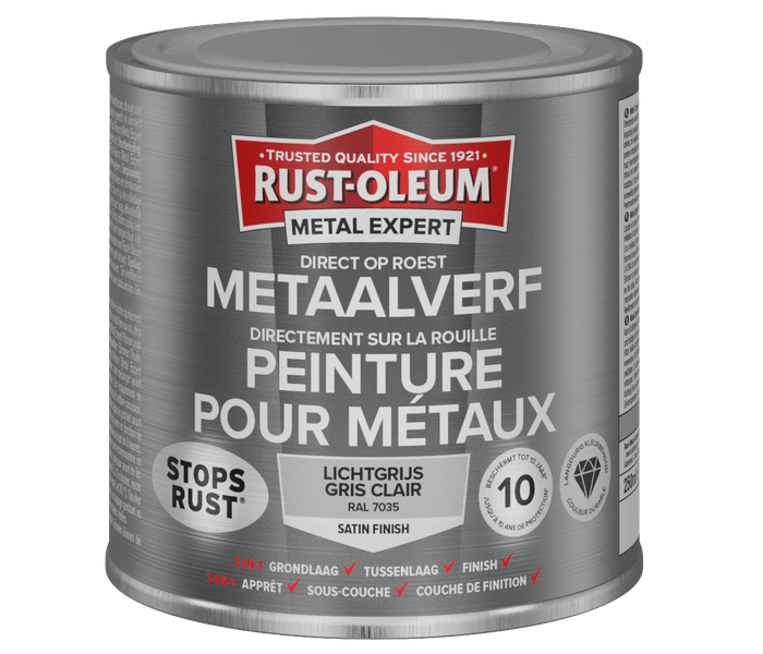 Peinture pour métaux Rust-Oleum Metal Expert Direct sur rouille 250ml - RAL 7035 Satiné