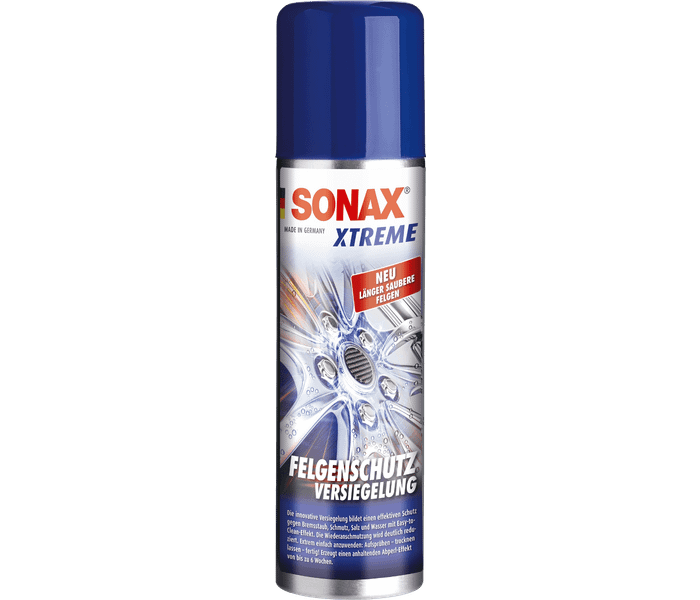 SONAX Xtreme forme une barrière protectrice efficace contre la poussière de frein, la saleté de la route et la saumure. Le nettoyage ultérieur des jantes est considérablement facilité. Le scellant pour jantes assure un bel effet de finition jusqu'à 6 semaines.