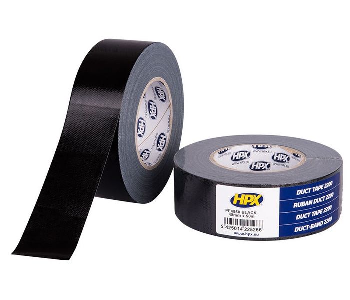 RUBAN DUCT de HPX est un ruban adhésif type scotch américain noir en toile de qualité supérieure avec une force adhésive très élevée. Ce scotch a une bonne adhérence sur la plupart des surfaces, y compris les surfaces ou matériaux poreux. Le ruban adhésif HPX noir mesure 48 mm de large et 50 mètres de long, il peut être déchiré à la main.