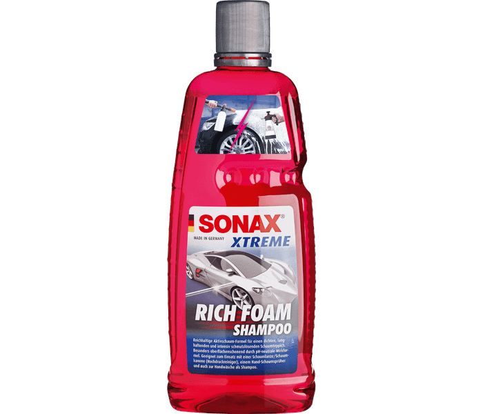 Le shampoing SONAX Xtreme Rich Foam est une mousse neige au pH neutre. Il n'attaque donc pas les revêtements spéciaux des voitures. Il possède un parfum spécial de baies et une mousse adhésive de très longue durée, ce qui lui permet d'agir longtemps sur la saleté et de l'absorber lentement. Se rince très facilement, sans laisser de résidus.