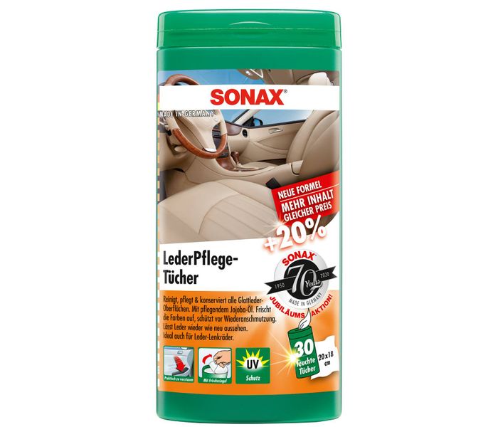 SONAX Lingettes en cuir pour voiture 25 pièces dans un seau distributeur sont prêtes à l'emploi immédiatement. Suivez ce plan d'action pour un intérieur en cuir optimal :