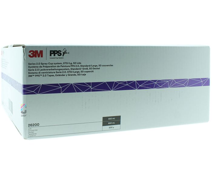 3M 26000PPS 2.0 Kit Standard, composto da 50 tazze interne da 650 ml, 50 coperchi con filtro per vernice da 200 micron, 32 tappi di chiusura e 1 tazza esterna. Questo kit di tazze 3M 26000 PPS 2.0 Standard è un sistema per la spruzzatura di più parti di auto e pannelli che richiedono fino a 650 ml di vernice. Il coperchio 3M PPS 2.0 con filtro per vernice da 200 micron è specifico per filtrare la vernice a base d'acqua e convenzionale mentre si spruzza con lo spruzzatore a tazza.