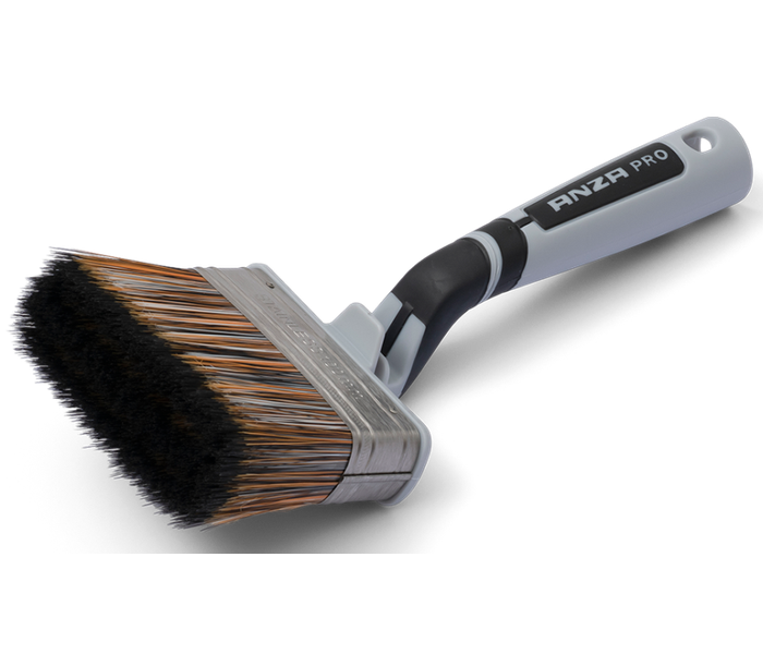 Anza Pro Super Effective Softgrip è realizzato con fibre rigide appositamente studiate per vernici sintetiche e prodotti a base d'acqua. I pennelli a blocco Anza hanno un elevato assorbimento della vernice e un rilascio uniforme della stessa. Include una custodia che mantiene la vernice umida fino a 2 settimane.