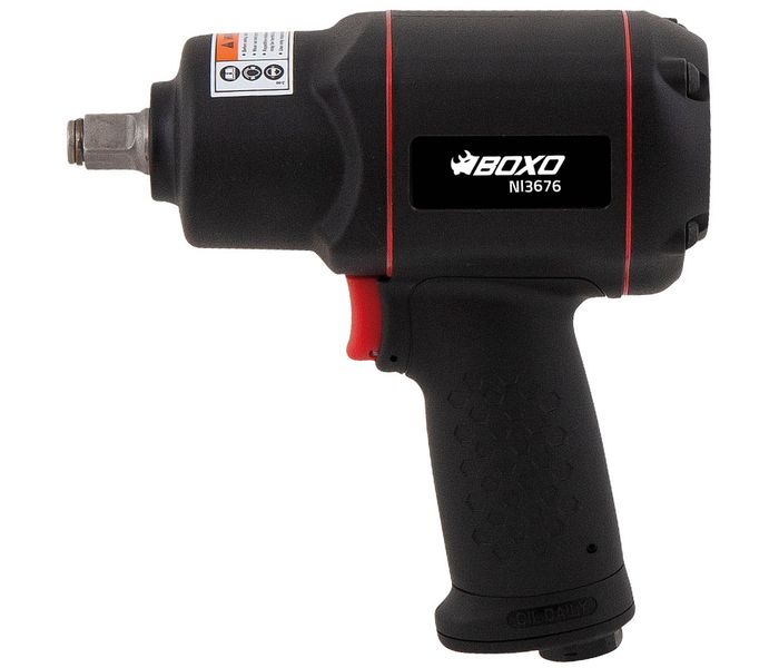 Boxo Impact Wrench Twin Hammer 1/2" 2100Nm per l'allentamento e il serraggio professionale di bulloni e dadi. Questa avvitatore pneumatica a percussione da mezzo pollice è stata progettata appositamente per il cambio degli pneumatici e per serrare e allentare i bulloni delle ruote. L'avvitatore consuma poca aria, ha un design ergonomico ed è realizzato in materiale composito di altissima qualità. Questo avvitatore professionale ha 3 posizioni e può essere utilizzato da mancini e destrorsi.